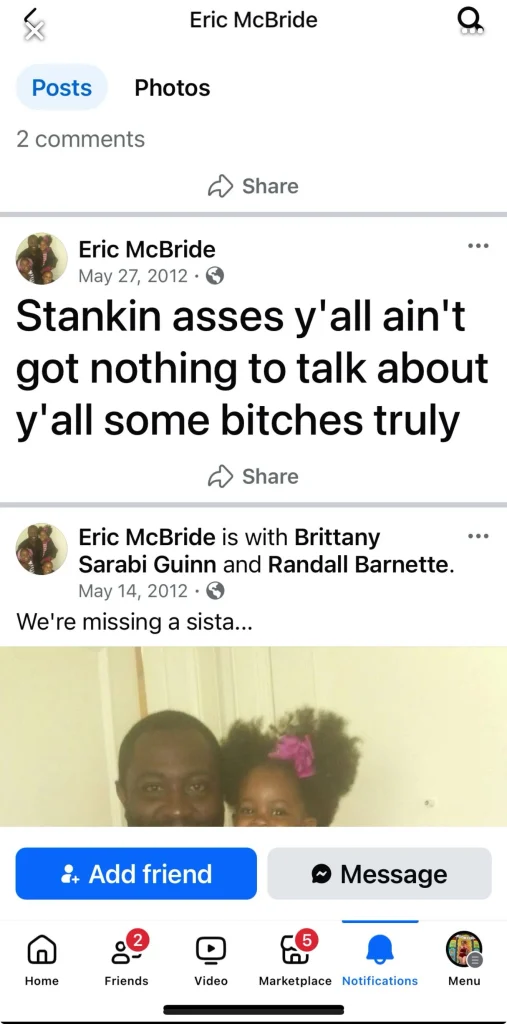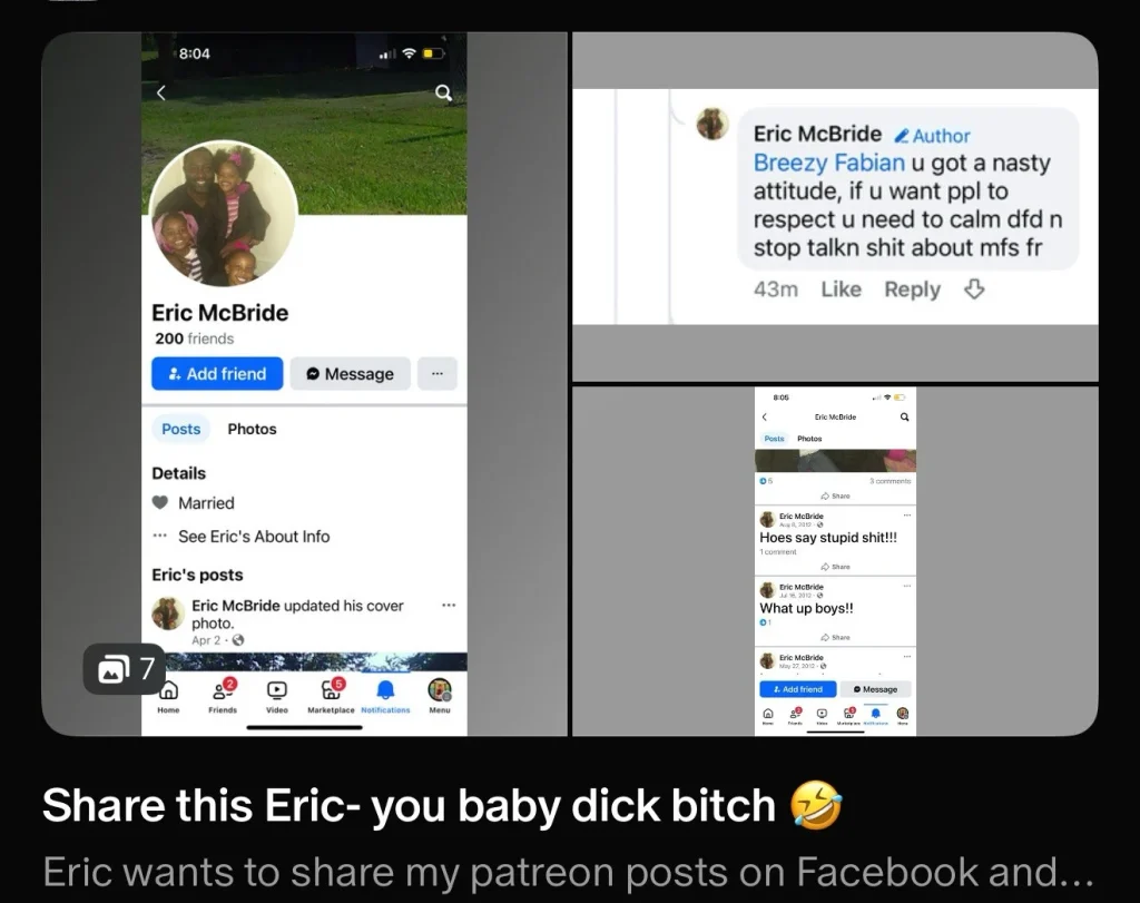 Eric McBride is a woman hating piece of shit GTFO This is why black men get a bad rep because of scum like you IDGAF about them kids. step to me and see what happens
