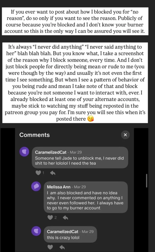Jade AKA FashionWithoutTrashin puts Petra aka Caramelizedcat in her place for being two-faced