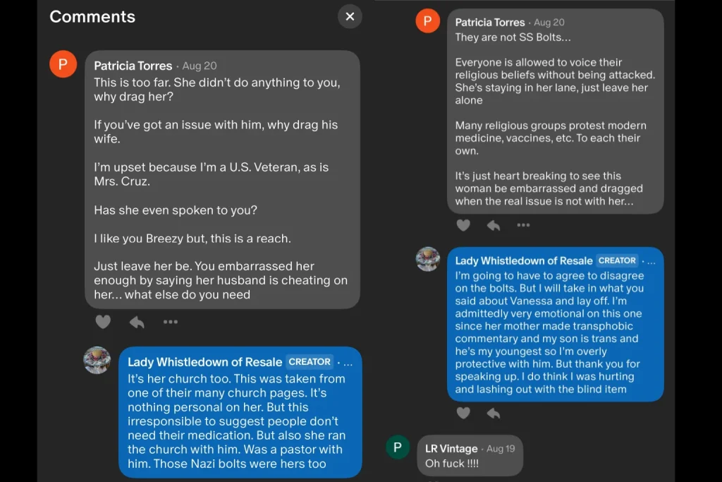 Erynn did a liberal slanting political post and Savanna took to her stories with a conservative counterpoint. It did get messy when commenters implied Erynn was stupid and Savana reposted. I don’t think this is the last time we will see resellers get messy over politics.